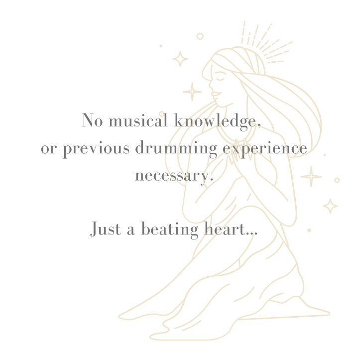 No musical knowledge, or previous drumming experience necessary. Just a beating heart..