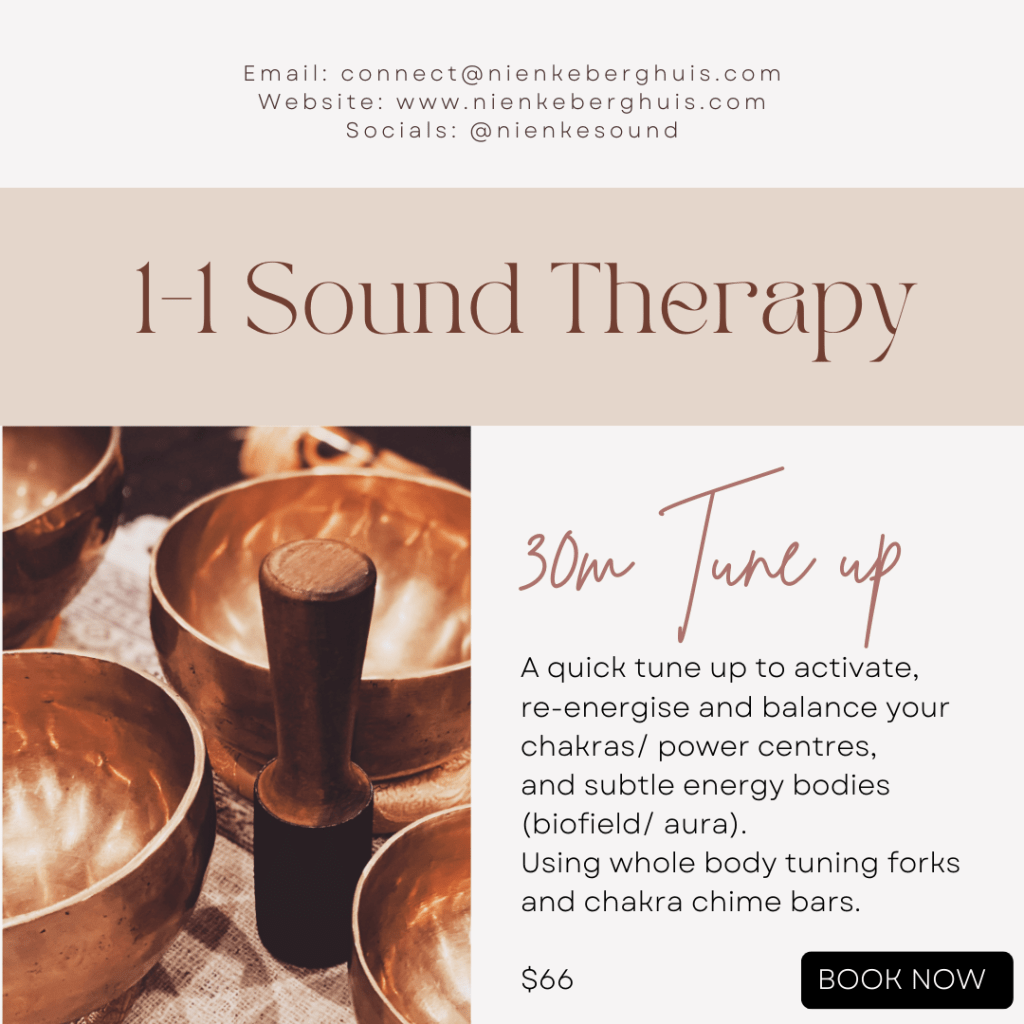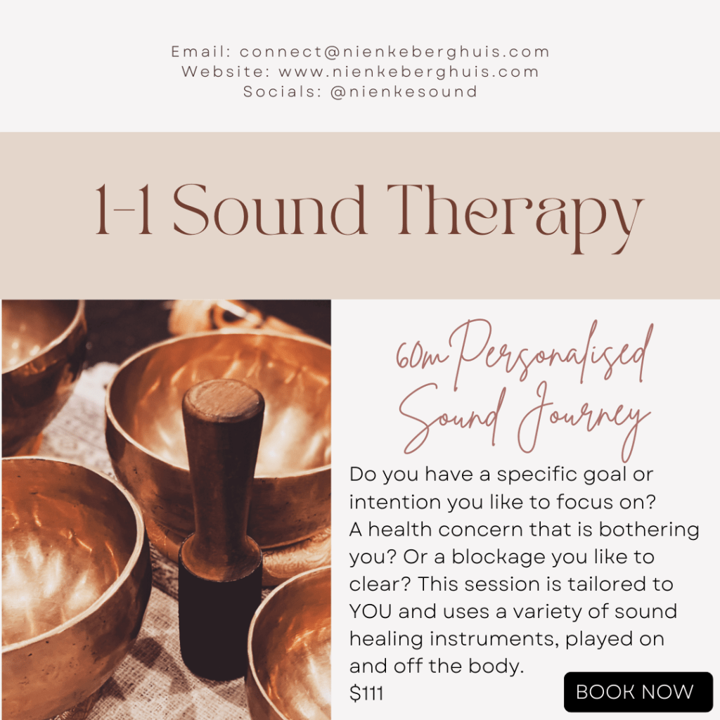 Check out my Facebook Page: www.facebook.com/nienkesound/events for upcoming sound healing events, or book a one on one sound therapy session below.
